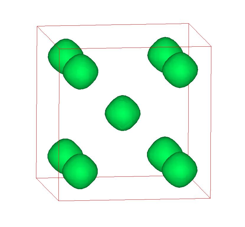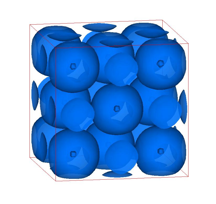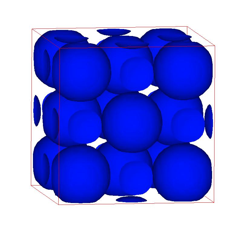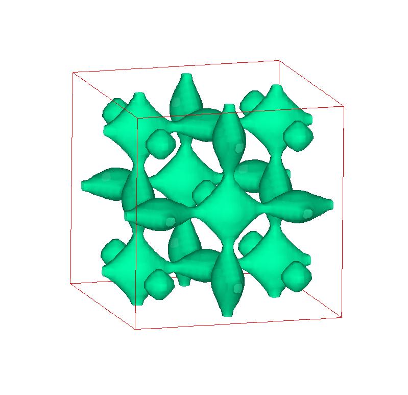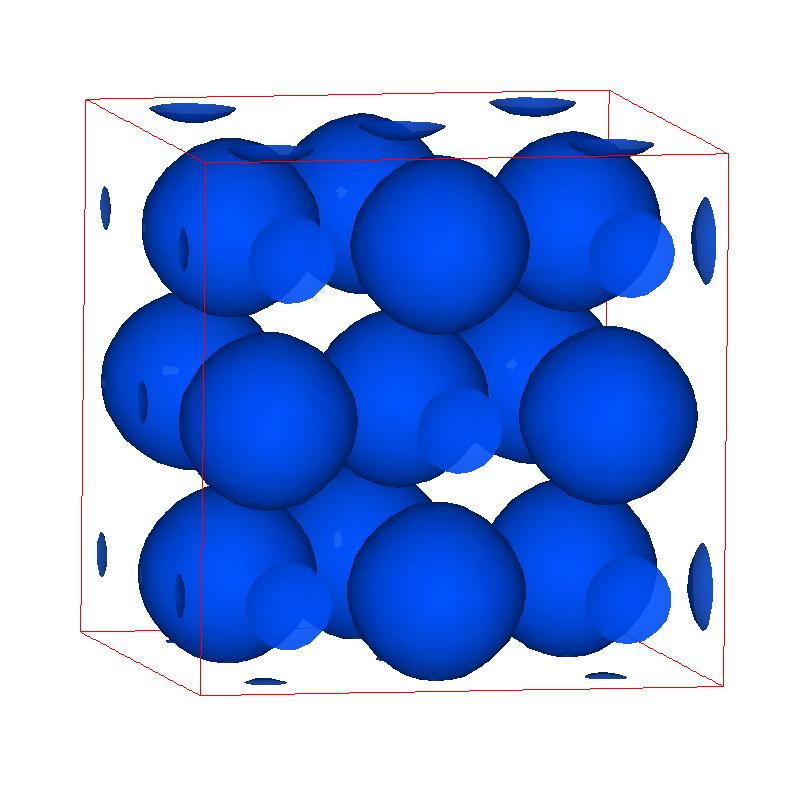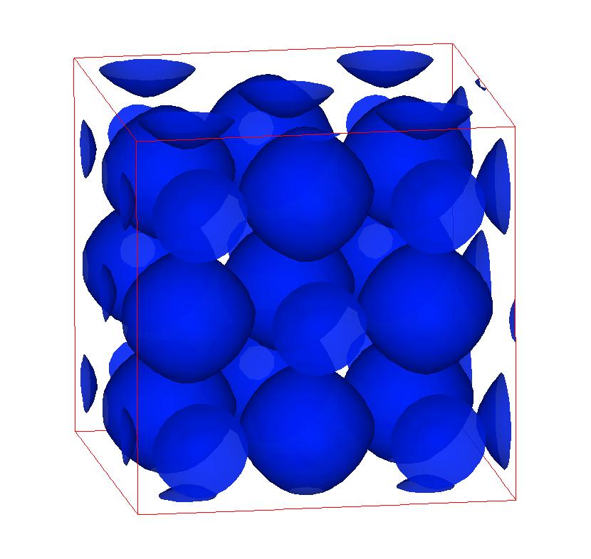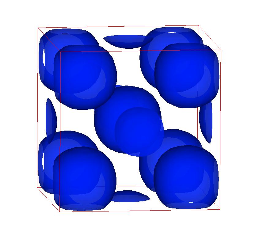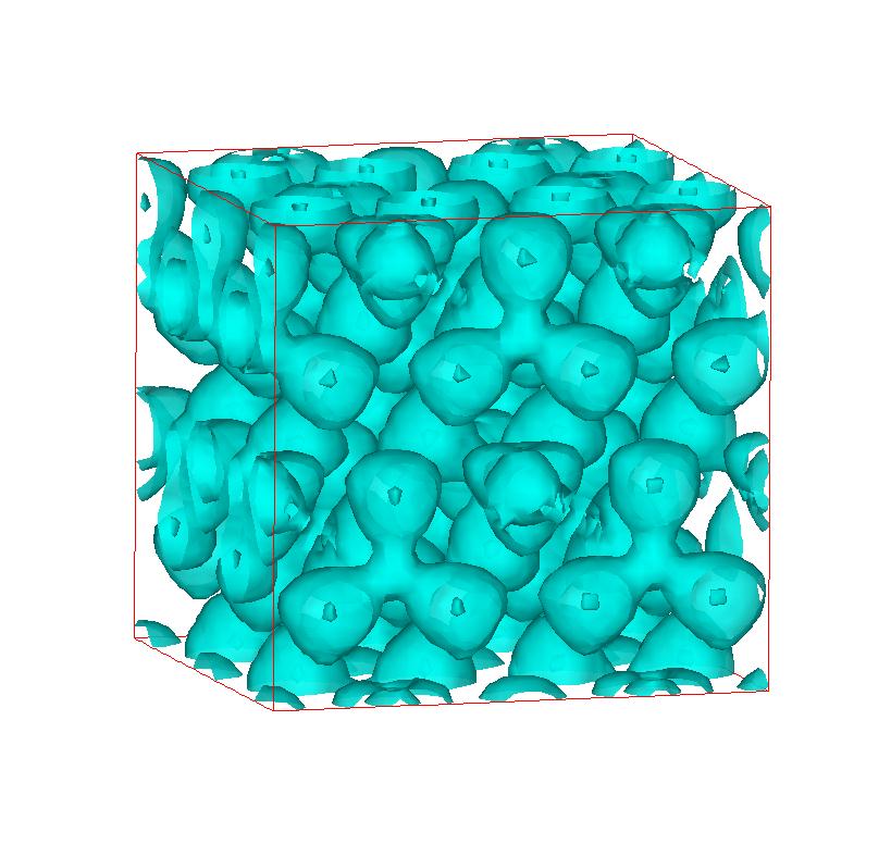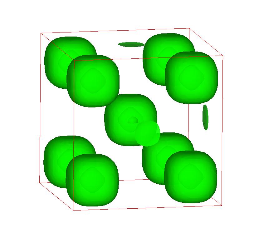 The following are valence charge density iso-surface plots of 22 crystals at their stress-free ground-states calculated using VASP. Click on 'movie' to see the animations where the contour values are varied from minimum to maximum (movie +) and from maximum to minimum (movie -) valence charge density ( h = rho x Vcell ). Three snapshots are taken in each movie and are shown on the right. Click on the thumbnail for larger view.