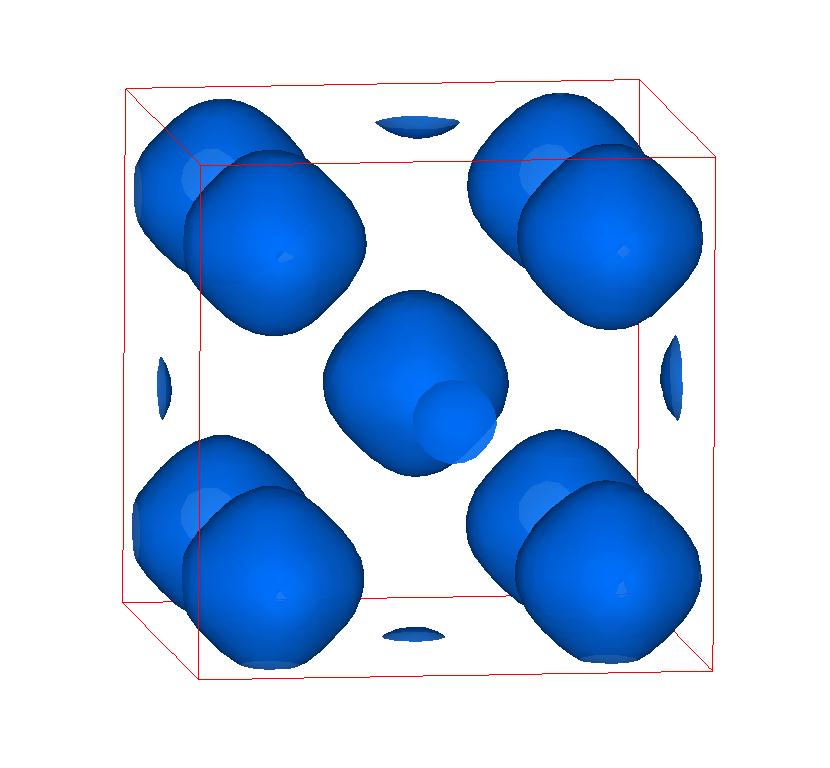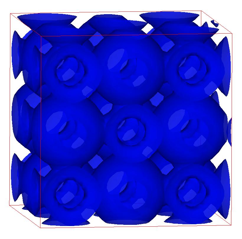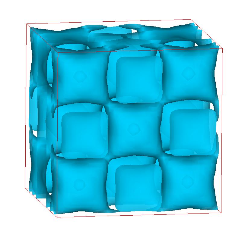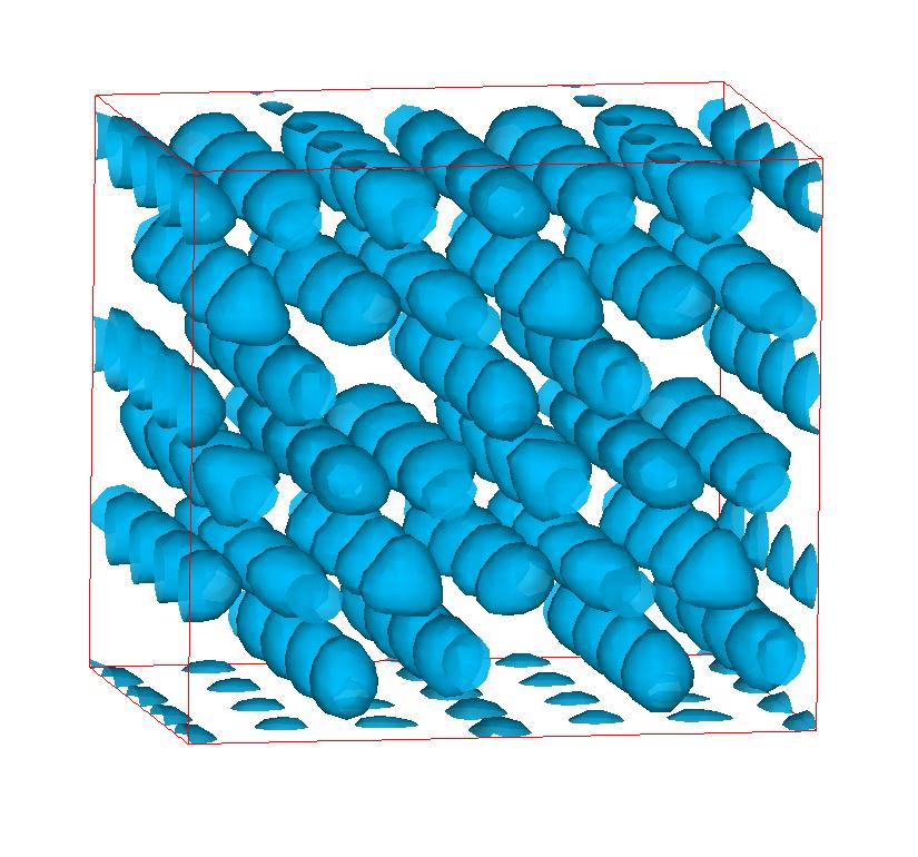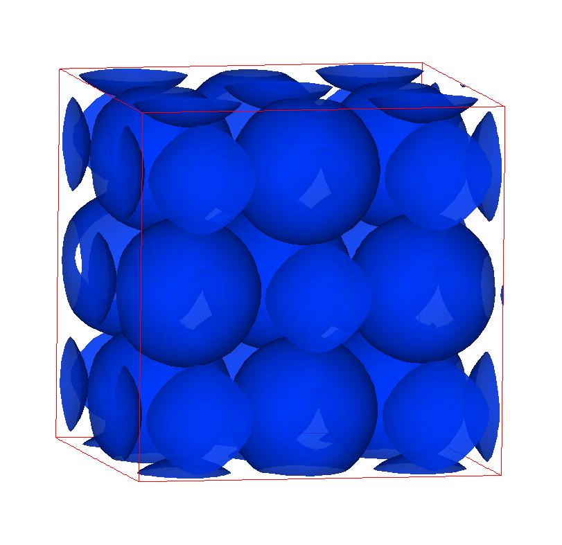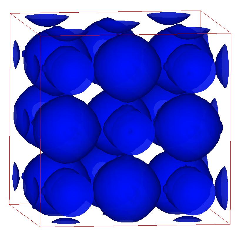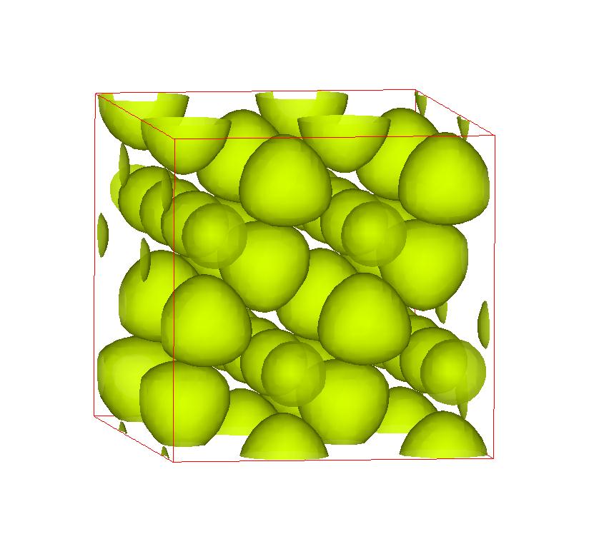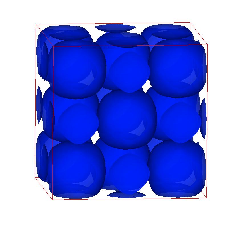 The following are valence charge density iso-surface plots of 22 crystals at their stress-free ground-states calculated using VASP. Click on 'movie' to see the animations where the contour values are varied from minimum to maximum (movie +) and from maximum to minimum (movie -) valence charge density ( h = rho x Vcell ). Three snapshots are taken in each movie and are shown on the right. Click on the thumbnail for larger view.