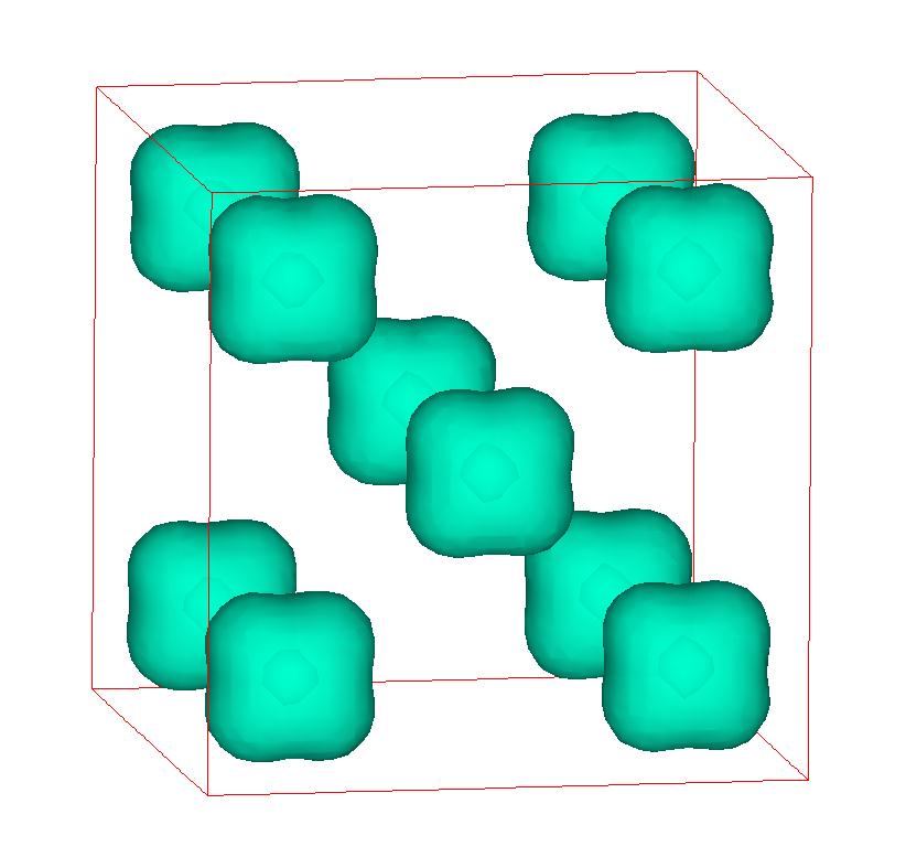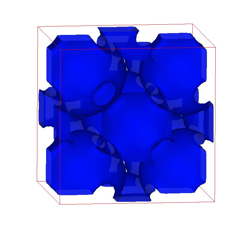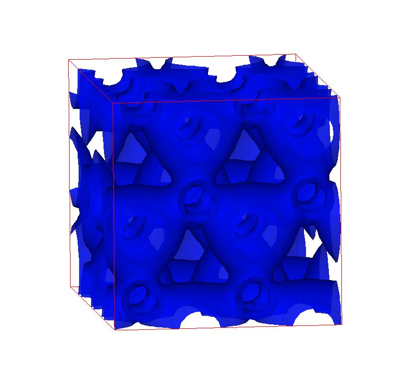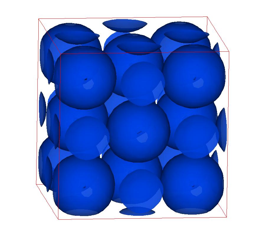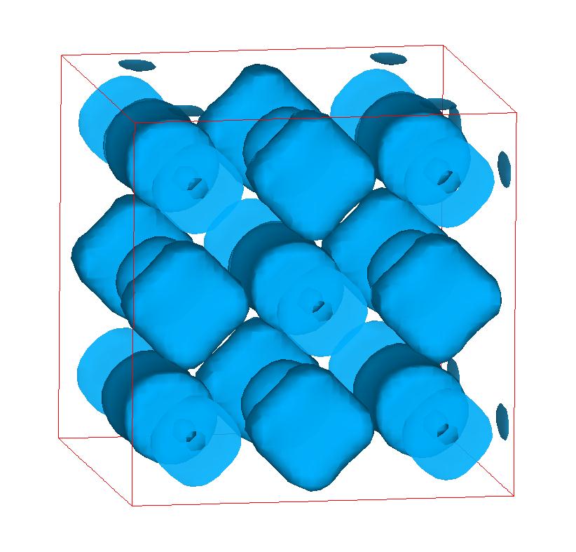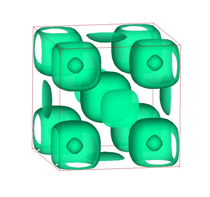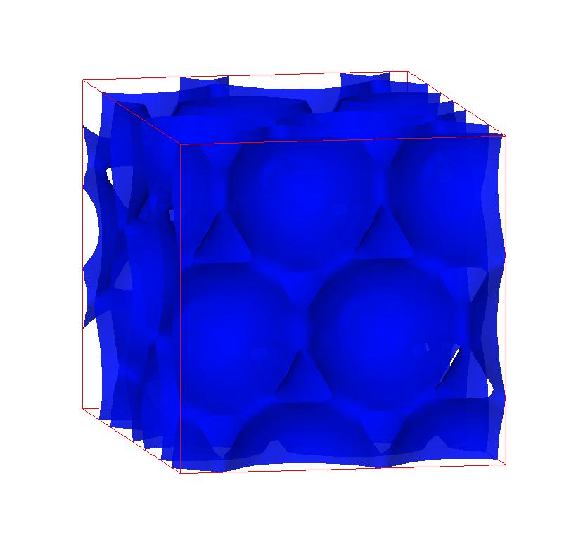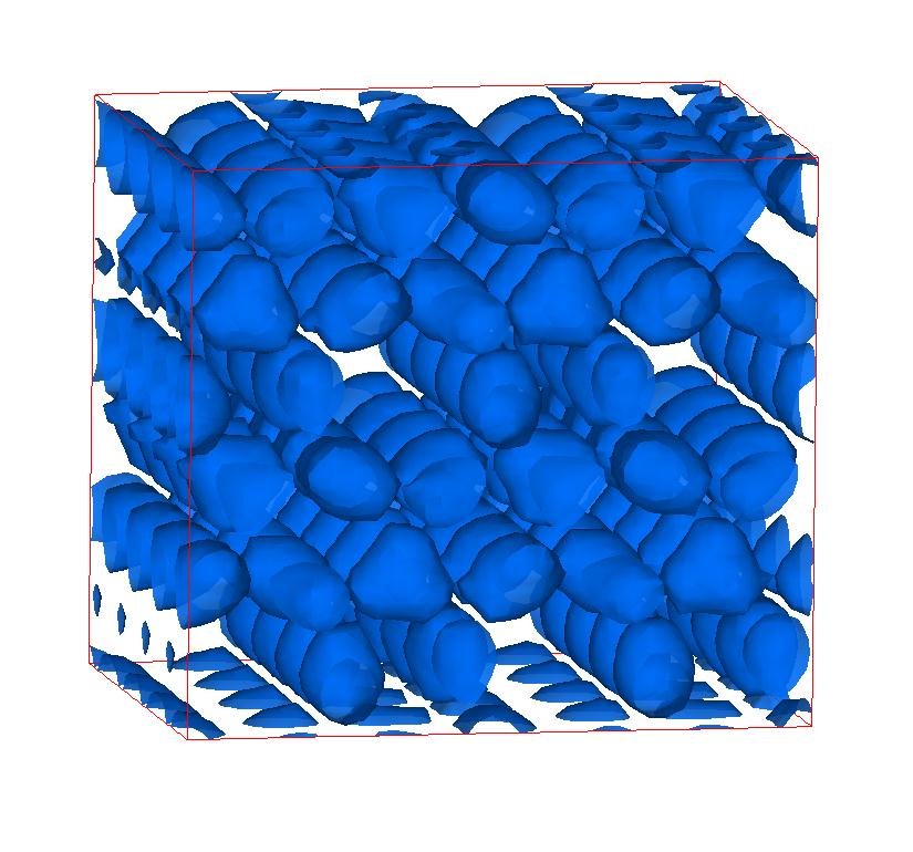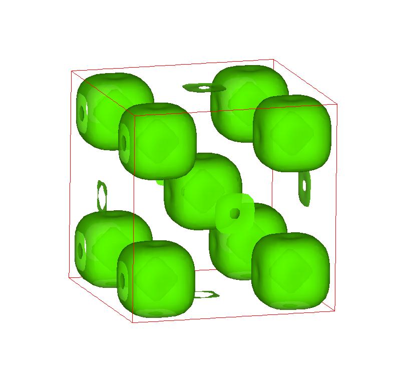 The following are valence charge density iso-surface plots of 22 crystals at their stress-free ground-states calculated using VASP. Click on 'movie' to see the animations where the contour values are varied from minimum to maximum (movie +) and from maximum to minimum (movie -) valence charge density ( h = rho x Vcell ). Three snapshots are taken in each movie and are shown on the right. Click on the thumbnail for larger view.