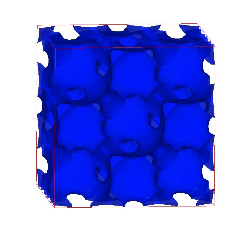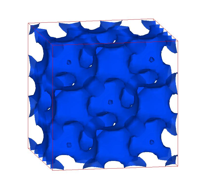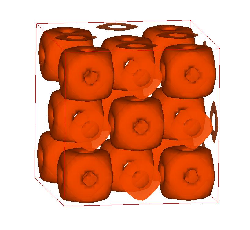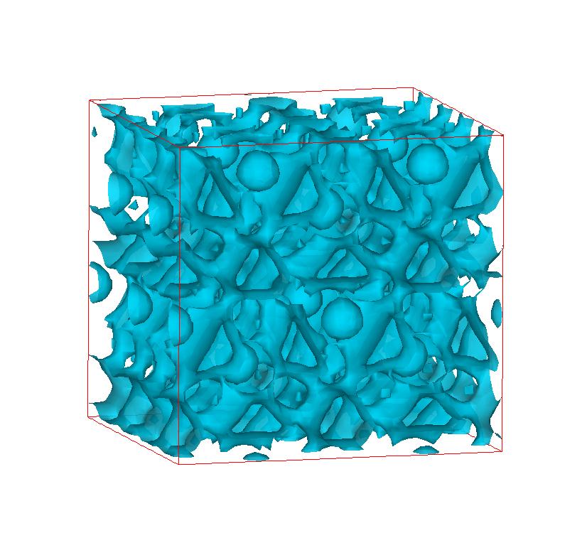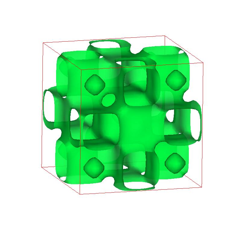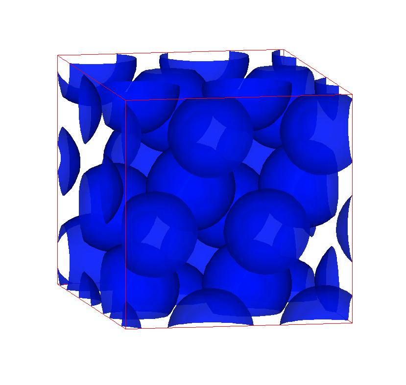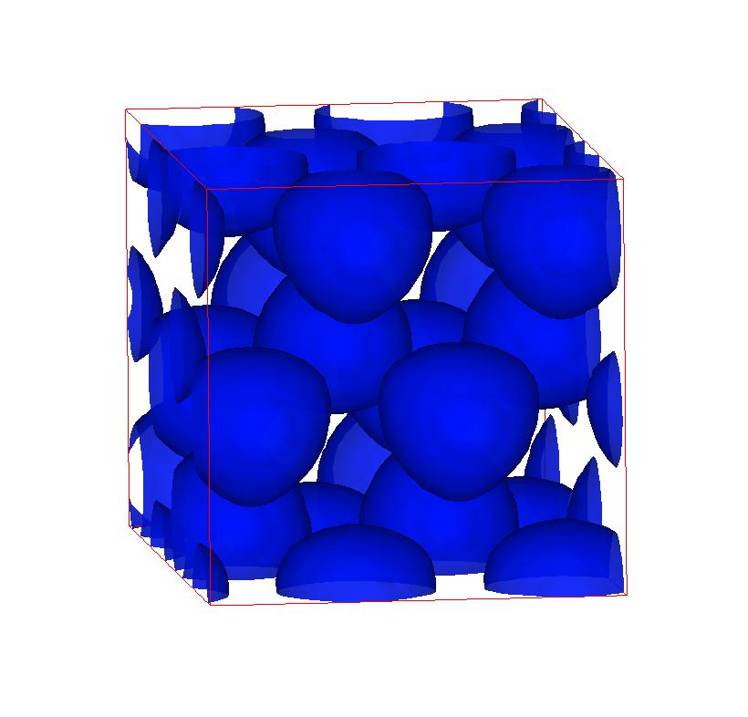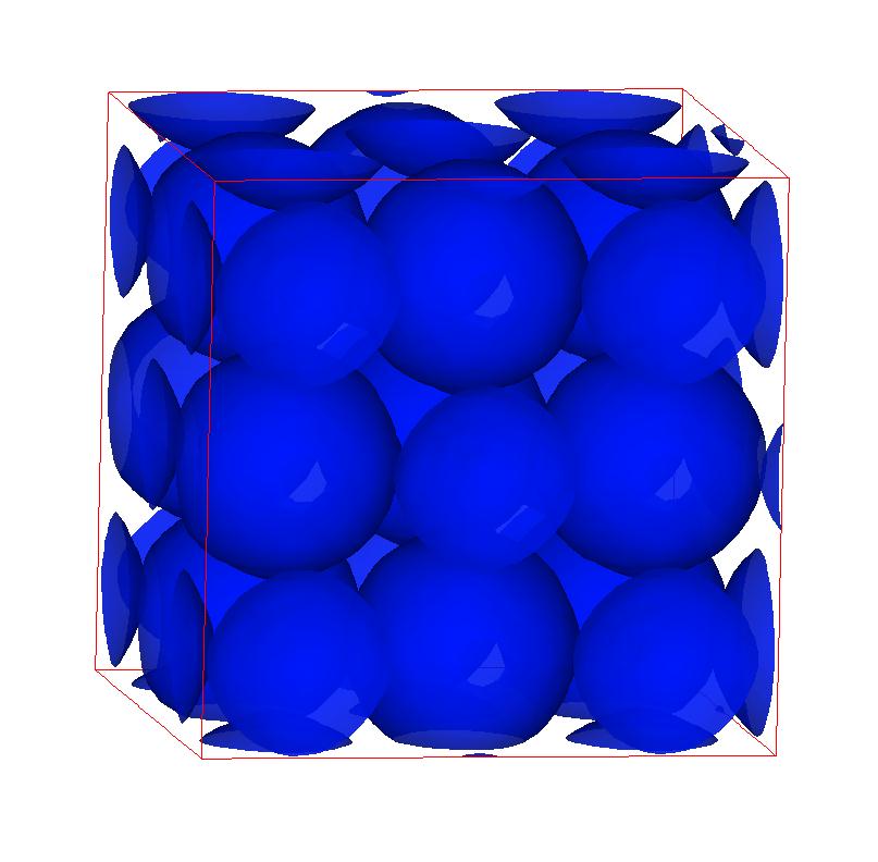 The following are valence charge density iso-surface plots of 22 crystals at their stress-free ground-states calculated using VASP. Click on 'movie' to see the animations where the contour values are varied from minimum to maximum (movie +) and from maximum to minimum (movie -) valence charge density ( h = rho x Vcell ). Three snapshots are taken in each movie and are shown on the right. Click on the thumbnail for larger view.