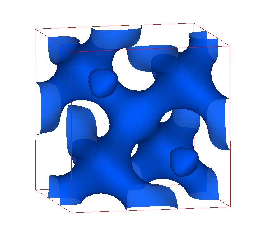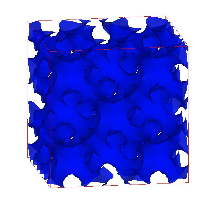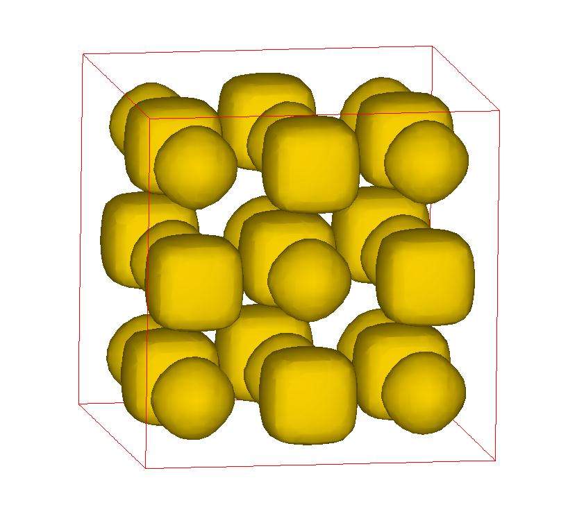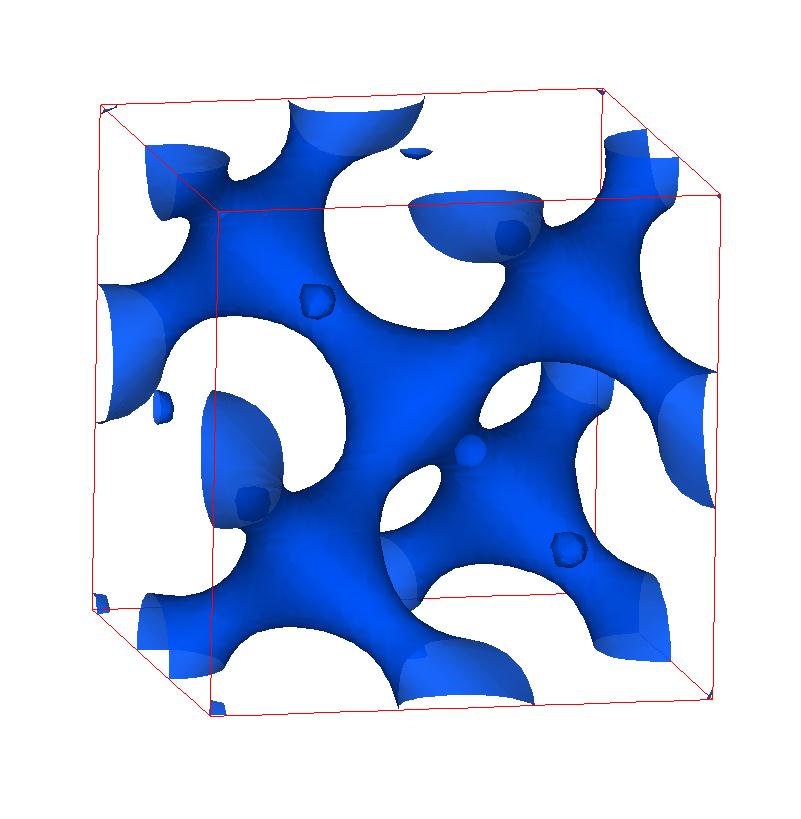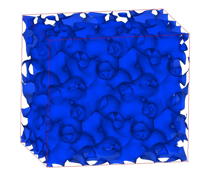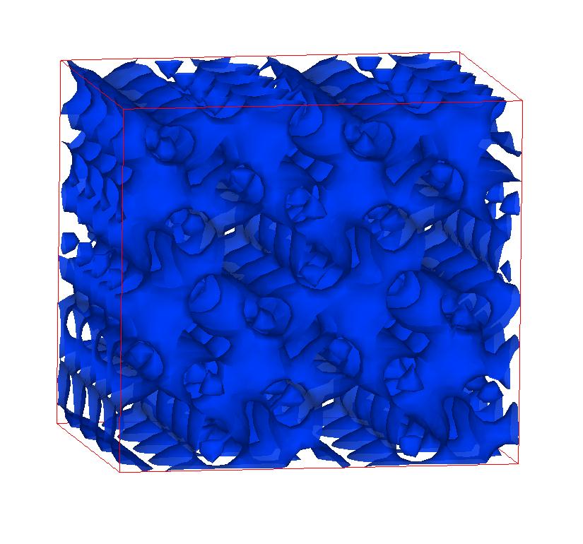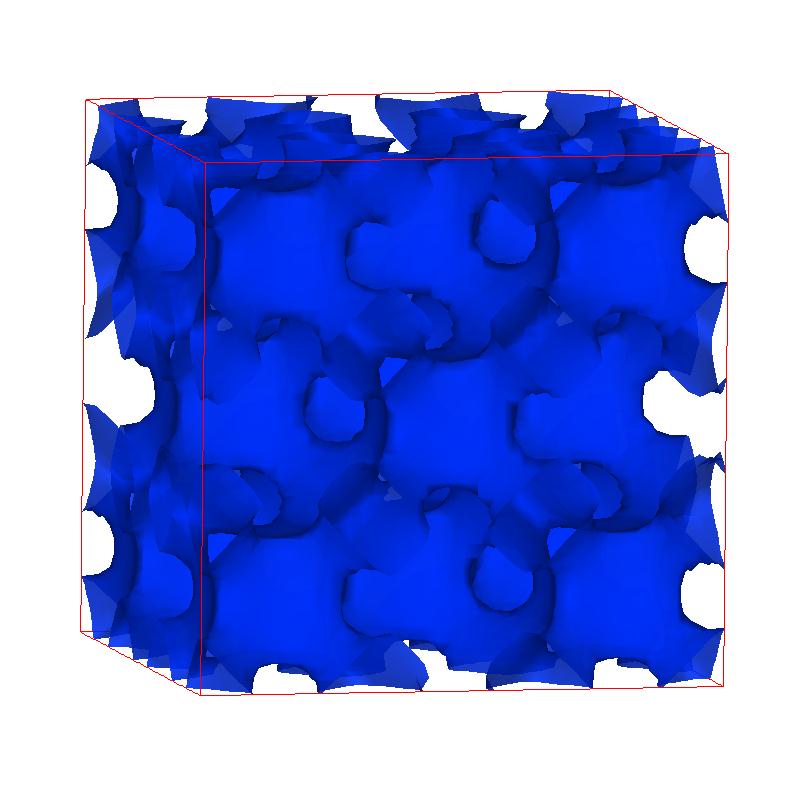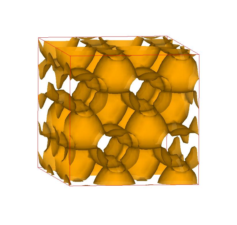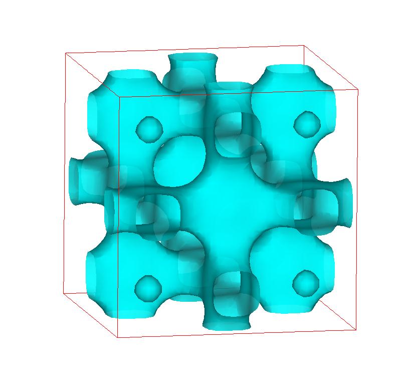 The following are valence charge density iso-surface plots of 22 crystals at their stress-free ground-states calculated using VASP. Click on 'movie' to see the animations where the contour values are varied from minimum to maximum (movie +) and from maximum to minimum (movie -) valence charge density ( h = rho x Vcell ). Three snapshots are taken in each movie and are shown on the right. Click on the thumbnail for larger view.